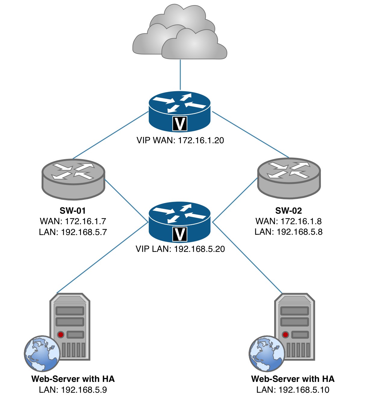 Рассмотрим свободную реализацию данной идеи с помощью протокола VRRP(Virtual Router Redundancy Protocol).