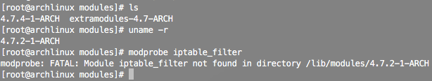 1 | [root@archlinux modules]# uname -r |