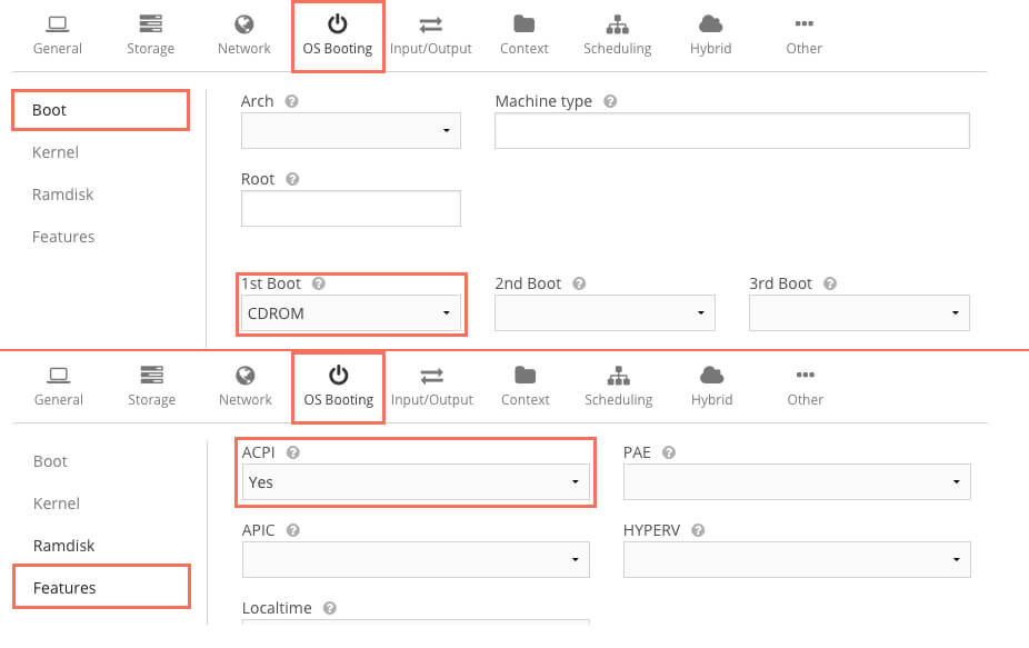 В меню Features включим параметр ACPI.
