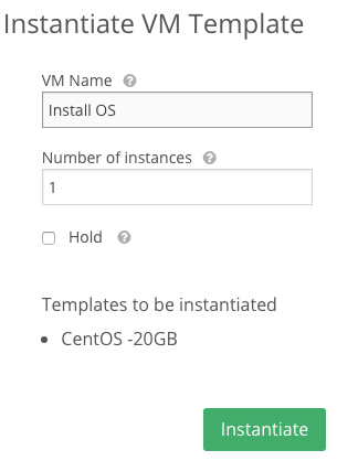 Инициализируем установку из созданного шаблона, для этого переходим в Virtual Resources -> Templates -> Instantiate, выбираем наш шаблон и создаем VM.