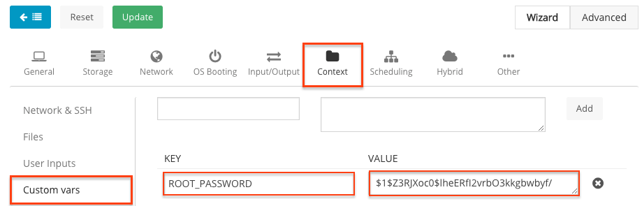 Virtual Resources -> Templates -> Update -> Context -> Custom Variables