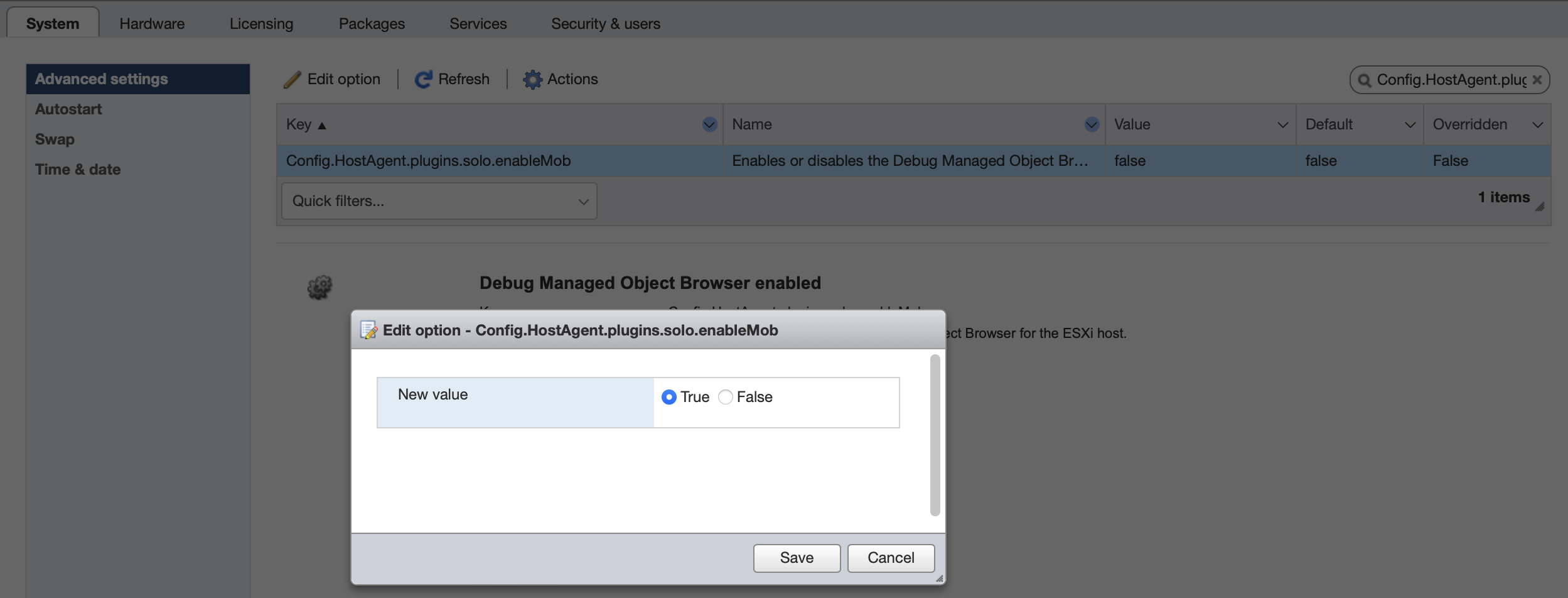 Для проверки, что всё получилось, переходим по адресу https://esxi_server_fqdn/mob/?moid=ha-host&doPath=hardware.systemInfo, должен открыться Managed Object Browser. После авторизации попадёте в раздел информации хоста.